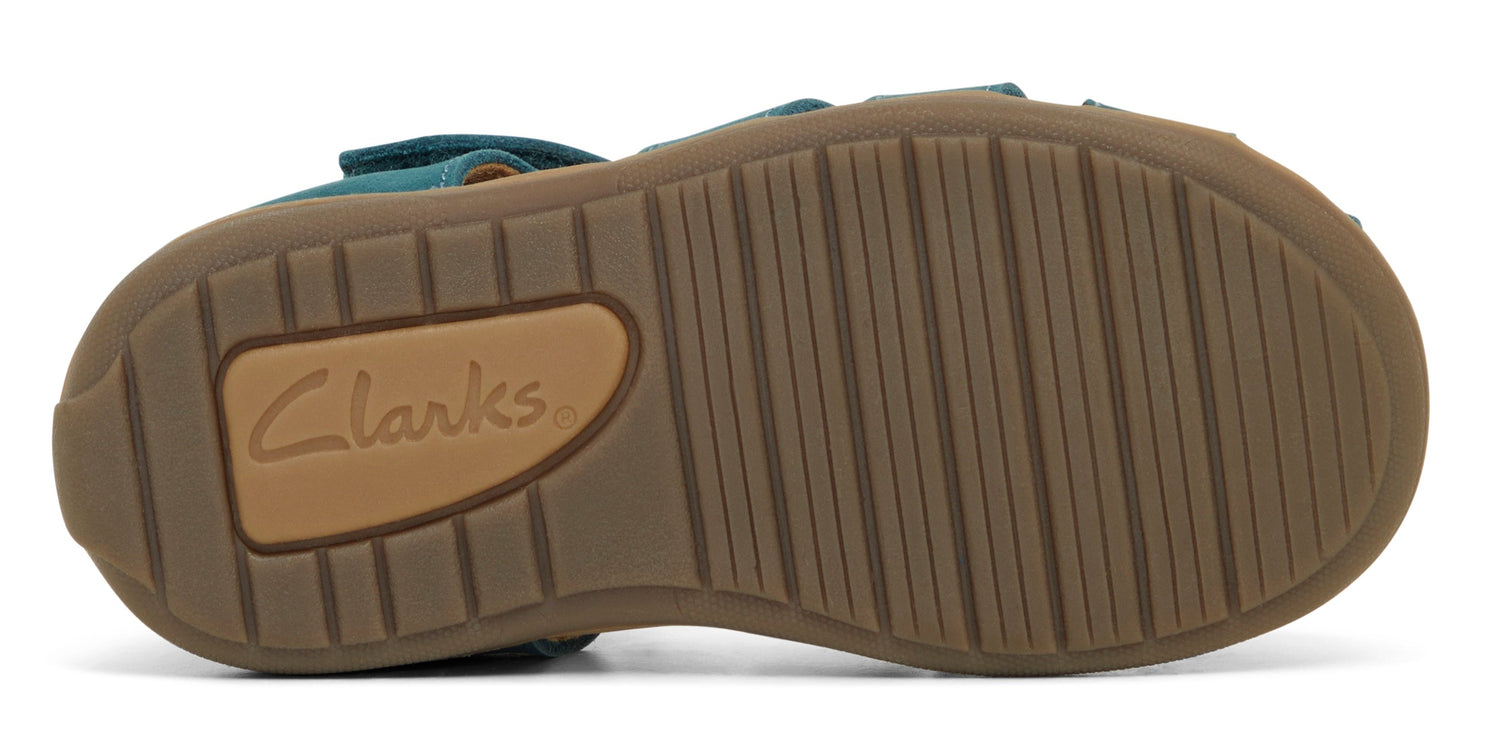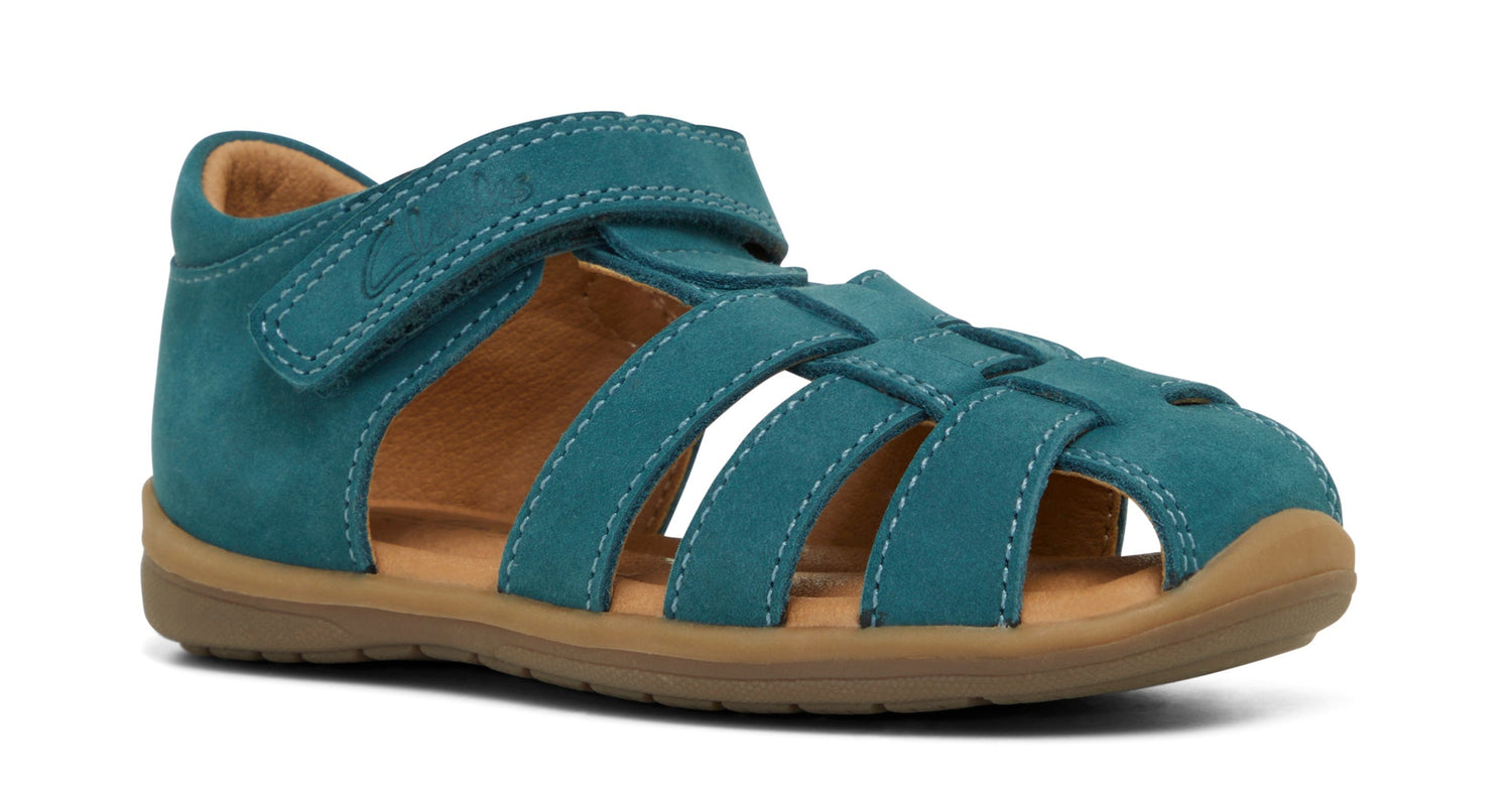 About: The Mateo is a stylish closed toe sandal for summer by Clarks. The shoe features a leather upper and lining, a durable sole unit and enclosed toe for extra protection. The adjustable velcro strap opening allows for easy adjustment, and the firm enclosed heel counter offers support and ensures comfort.
